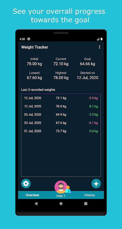 Weight Tracker یک برنامه ساده و با کاربرد آسان است که به شما کمک می کند از دست دادن / افزایش وزن پیگیری کنید