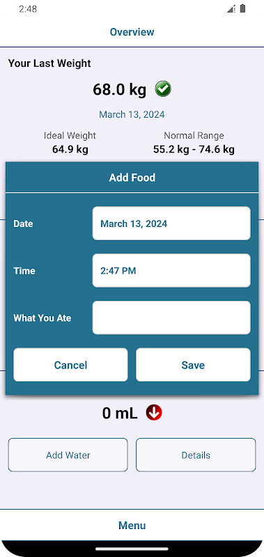 نظارت بر تغذیه: به راحتی وعده های غذایی و میان وعده های روزانه خود را ثبت کنید و بینشی در مورد عادات غذایی خود به دست آورید.