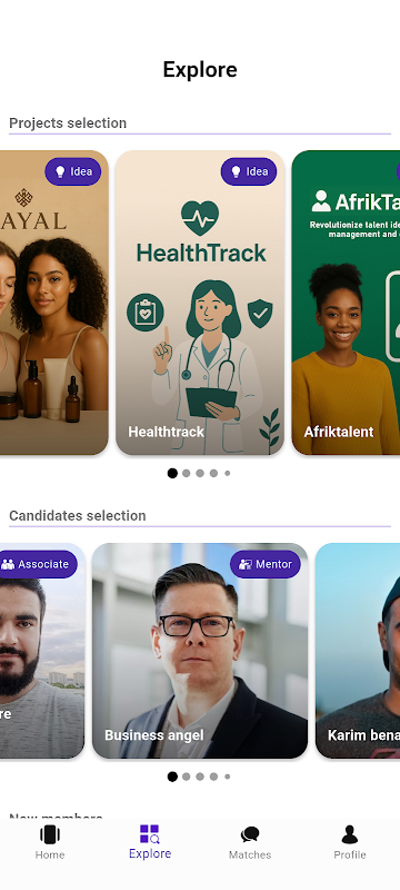 اعثر على الشركاء والمؤسين المشاركين الذين يشاركونك نفس الرؤية. تعتمد منصتنا علی خوارزمیة مطابقة قوية تربطك بالمستخدمين بناءً علی اهتماماتك و أهدافك.