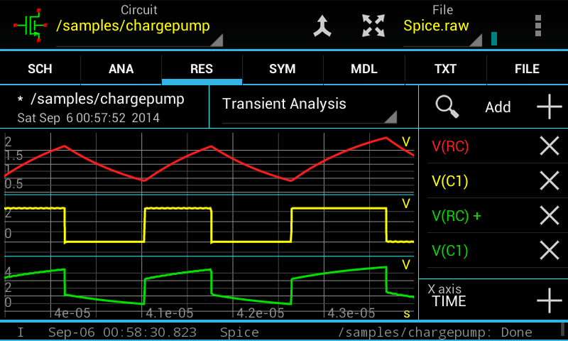 + شبیه ساز NGSPICE است، بر اساس برکلی SPICE 3F5. در مقایسه با SPICE 3F5، NGSPICE است بسیاری از اضافات، با ثبات تر است و سریع تر اجرا می شود.