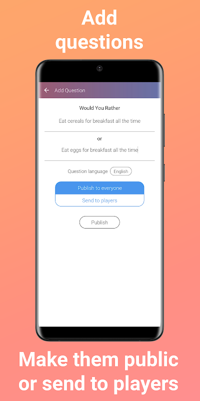 شما همچنین می توانید سوالات خود را ترجیح می دهید (هر دو) اضافه کنید. هر گزینه سوال شماره منحصر به فرد خود را دارد که می توانید آن را با دوستان و خانواده خود به اشتراک بگذارید تا آنها بتوانند آن سوال را بازی کنند و ببینند که آیا ترجیح می دهند سناریو 1 یا سناریو 2 را بشکنند یا قبول کنند.