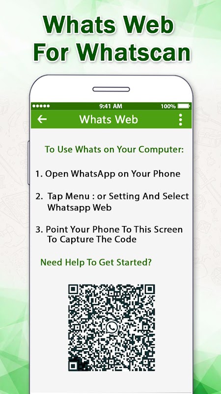 WhatsWeb QR scan, whatscan is the simple and easy app that you can open whatzapp web on your mobile and Control another whatzapp with the same device.