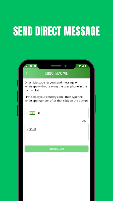 این برنامه همچنین دارای یک ویژگی منحصر به فرد پیام مستقیم است که به شما امکان می دهد بدون ذخیره شماره تلفن در لیست مخاطبین خود پیامی را در واتس اپ ارسال کنید. این ویژگی زمانی مفید است که پیامی از یک شماره ناشناس دریافت می کنید و می خواهید به سرعت بدون درهم ریختن لیست مخاطبین خود پاسخ دهید. به سادگی شماره را در برنامه وارد کنید و پیام را مستقیما ارسال کنید.