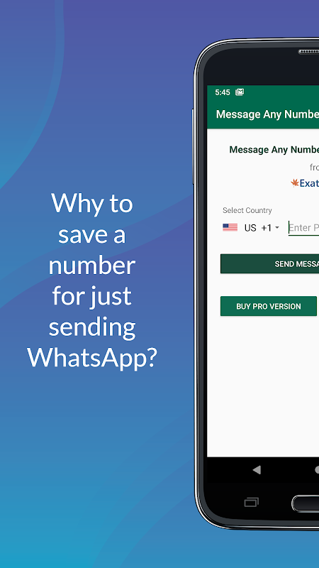 WhatsMessage (Previously named: Message Any Number for WhatsApp) helps you in chatting on WhatsApp, and make WhatsApp Voice call or WhatsApp Video Calls without saving their numbers in your phone contact book.