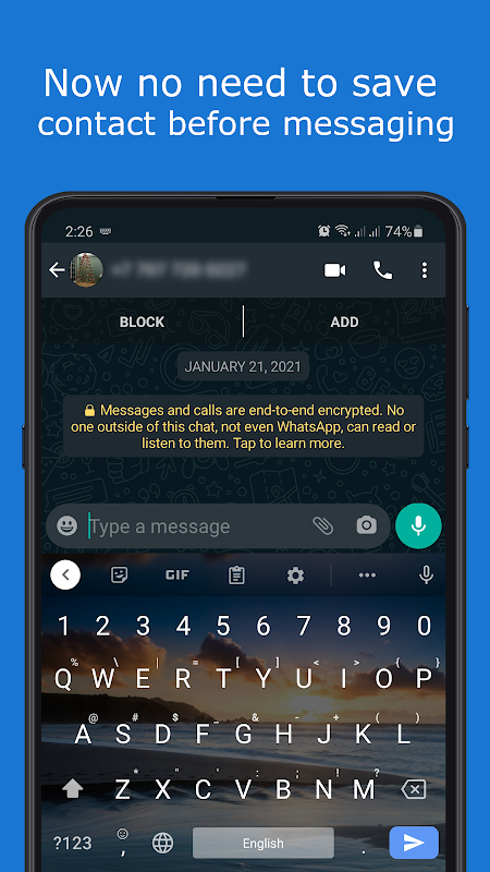 هیچ مخاطبی روی دستگاه ایجاد نمی شود، بنابراین برای باز کردن چت نیازی به ذخیره شماره در لیست مخاطبین خود ندارید. به سادگی برنامه را باز کنید، شماره را وارد کنید، روی دکمه کلیک کنید و چت باز می شود (در صورت وجود شماره، در غیر این صورت واتس اپ به آن اطلاع می دهد).