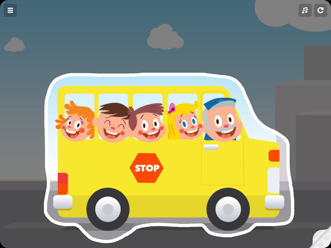 Tap the right part and sing along to 'Wheels on the Bus!'