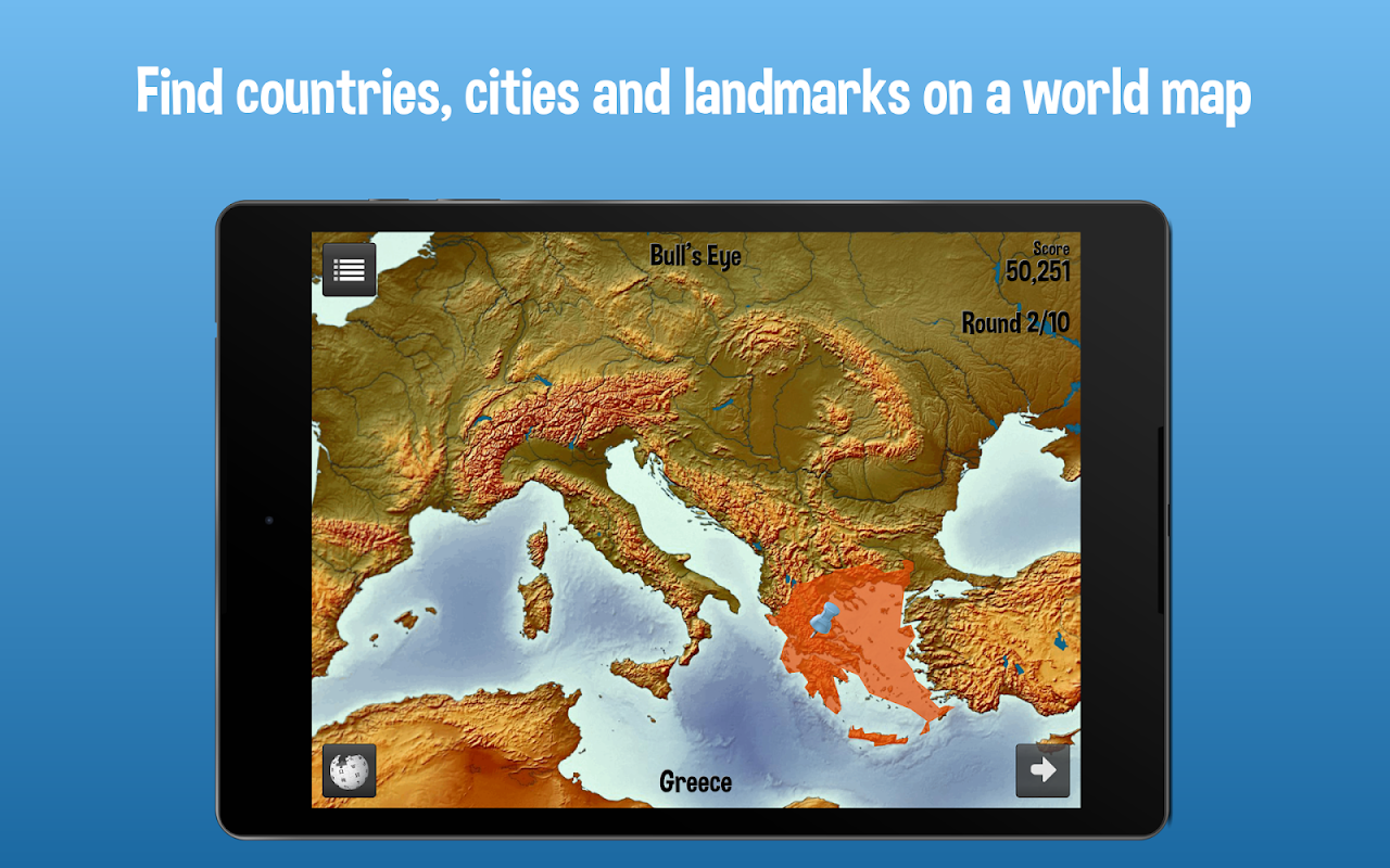 اگر شما می دانید جهان و یا می خواهید به یادگیری جغرافیا، بازی این بازی و پیدا کردن کشورها، پایتخت، شهرهای، ایالات، استادیوم ها، کوه ها و آسمان خراش ها در سراسر جهان.