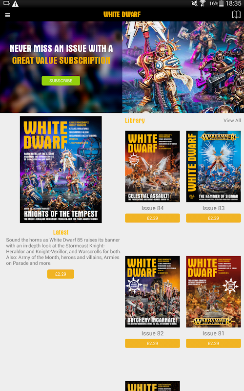 Subscribe to Games Workshop's weekly magazine on your phone and tablet.
