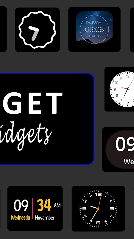 یک ابزار ویجت با طراحی زیبا و با کاربری آسان که انواع طرح های رنگی تم را ارائه می دهد. مجموعه ای غنی از ویجت های کاربردی مانند ویجت پخش کننده موسیقی، ویجت ساعت آنالوگ، ویجت ساعت چرخشی، ویجت تقویم، ویجت اطلاعات دستگاه و ویجت عکس را ارائه می دهد. برای تزئین گوشی و افزایش کارایی می توانید به راحتی آنها را به صفحه اصلی خود اضافه کنید.