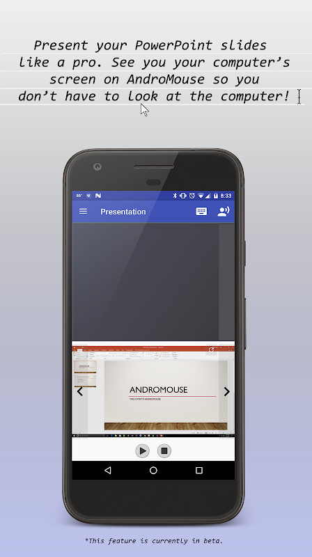 بهترین و اصلی موس آندروید از راه دور و صفحه کلید وجود دارد. AndroMouse تبدیل گوشی خود را ماوس بی سیم، صفحه کلید، و بیشتر. ارتباط با کامپیوتر خود را یا با استفاده از موجود خود را از Wi-Fi و یا با استفاده از بلوتوث ساخته شده است. AndroMouse همچنین ویژگی های گفتار به نوع استفاده می کند تشخیص گفتار گوگل به کار خود را آسان تر است.