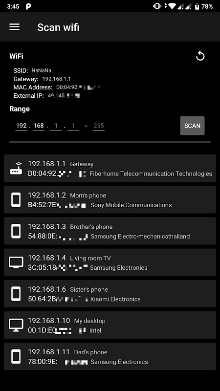 اسکنر آدرس آی پی شبکه WiFi شما. ساده و آسان برای نظارت بر تمام دستگاه متصل است. این به شما اجازه می دهد دستگاه را ذخیره کنید و هر دستگاه ناشناخته را ردیابی کنید.
