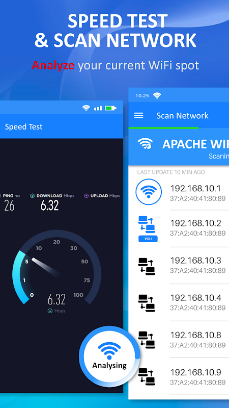 Wifi Speed Test - Speed Check, is best tool to check internet speed, tests wifi speed in one tap. It tests speed of wifi and data internet connection. Wifi Speed Test helps to exactly acquire the speed of ping, downloading and uploading, and ensure the network security of wifi hotspots.