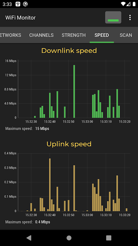 نمودار "Strength" به شما کمک می کند تا سطح توان دریافتی نقاط WiFi موجود را مقایسه کرده و پویایی آن را ردیابی کنید. هرچه قدرت سیگنال روتر بیشتر باشد ، کیفیت اتصال بی سیم بهتر است.