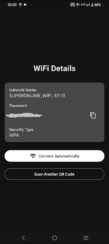 WiFi QR Code Scanner for Wifi Password یک ابزار مینیمالیستی و سبک وزن است که اتصال به شبکه های WiFi را سریع و آسان می کند. به سادگی یک کد QR وای فای را اسکن کنید و این برنامه به طور خودکار به شما کمک می کند بدون تایپ رمزهای عبور پیچیده متصل شوید.