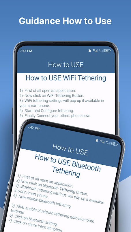 راههای زیادی برای اشتراکگذاری اتصال اینترنت مانند اترنت وایفای و اتصال بلوتوث وجود دارد. با استفاده از این برنامه تترینگ بلوتوث میتوانید یک اتصال اینترنتی مانند یک هات اسپات تلفن همراه را به اشتراک بگذارید. اتصال اینترنت تلفن همراه ایجاد شده شما به راحتی به هر رایانه یا دستگاه اندرویدی متصل می شود. از اتصال اینترنت در دستگاهها در هر مکانی استفاده کنید. Wifi Tethering نسخه ارتقا یافته جدید Wifi Tethering است اما تفاوت اصلی این است که اتصال Wifi در همه دستگاه ها پشتیبانی می شود. و همچنین می توانید دسترسی کامل به اینترنت را برای هر دستگاه غیر اندرویدی مانند دستگاه های غیر مارک فراهم کنید. بنابراین به راحتی و به سرعت یک برنامه اتصال به اینترنت وای فای برای همه برنامه های پخش جریانی که می توانند به اینترنت دسترسی داشته باشند راه اندازی کنید.