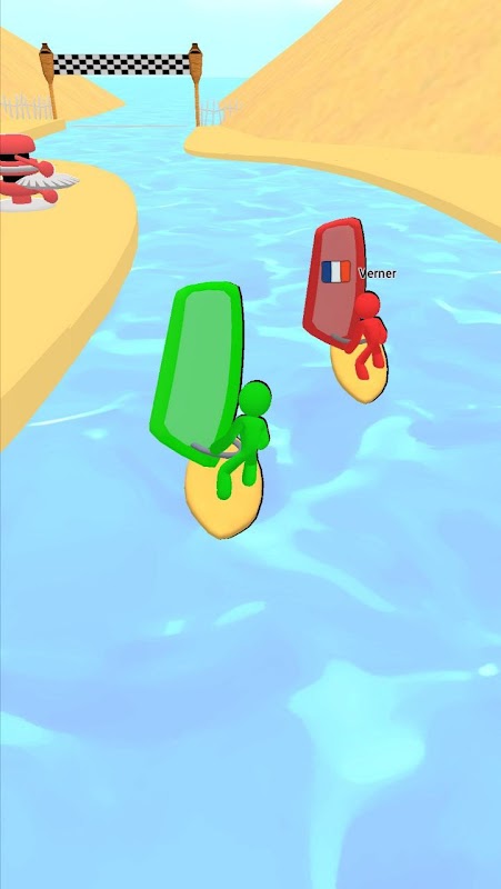 شما با موج سواری در رودخانه مسابقه می دهید. شما می توانید حیله گری کنید و حریفان خود را از بین ببرید. شما باید به هر قیمتی برنده شوید!