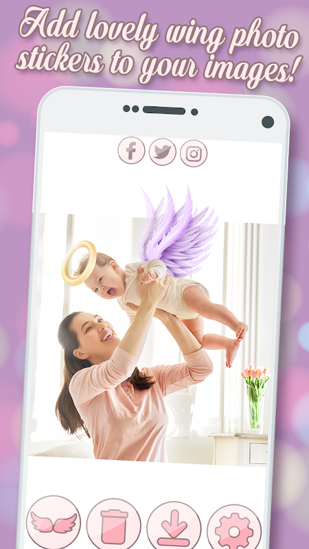 Wear wings in photo every day thanks to the photo filters and effects from the demon wings photo editor! Open the 👼Wings for Photos👼 photo montage for men and start your photo makeover! Turn into a fantasy angel with this photo editor stickers at least for a day! Enrich your collection of photo modifying apps with another butterfly photo editor. If you like angel wings apps for pictures, download this girl editor and enjoy putting wings on photo! This angel wings app features amazing photo stickers free. Having stickers on photo has never been easier! All you have to do is upload a picture from the photo gallery, add wings effect, photo frames and effects fantasy, and become a fantasy butterfly!
