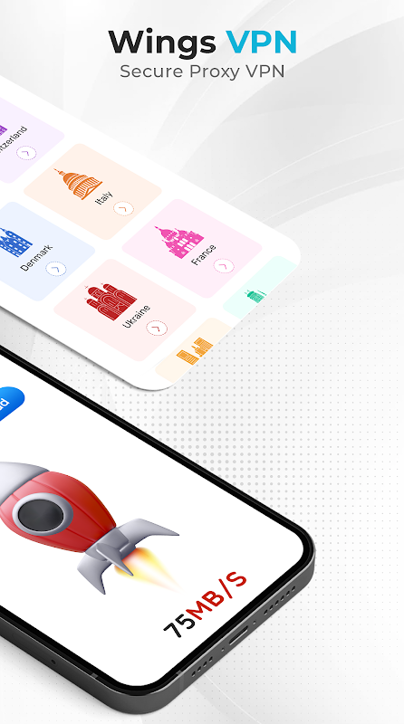 There is no need to create an account, and once you open the Wings VPN - Secure Proxy VPN app for the first time, you just need to select the proxy server you wish to connect to, and your encrypted connection will be established in a blink of an eye.