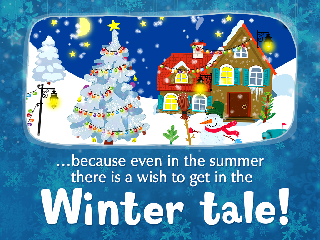 It’s a nostalgic game about magical winter time, when everyone dreams to hear the noise of burning wood, look how snow is falling, wrap the gifts and prepare for the most wonderful and long-awaited winter holidays – Christmas and New Year! Download «Winter tale» to skate, burn wood in fireplace, throw snowballs, decorate a snowman, visit Santa Clause, feed a deer and hares, let off the fireworks and decorate the Christmas tree!