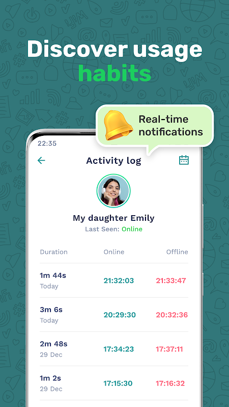 LastSeen Checker از نظارت بر آخرین وضعیت دیده شدن عزیزانتان و کنترل استفاده از برنامههای پیامرسانی خود تا مدیریت زمان صفحه نمایش فرزندانتان، به شما اطلاع میدهد که در هر لحظه چه خبر است.