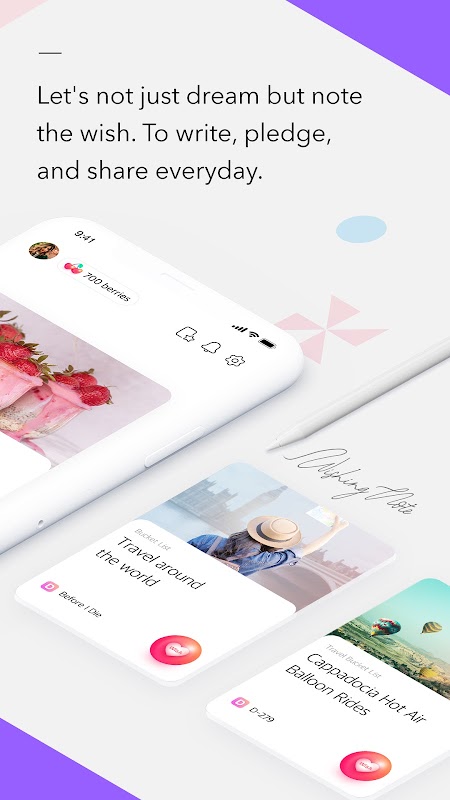 Wishing Note یک لیست سطل SNS است. روزانه به خواسته ها و اهدافتان که می خواهید به آنها برسید تعهد دهید و روند کار را با افرادی که رویاهای شما را مشترک دارند ثبت و به اشتراک بگذارید.