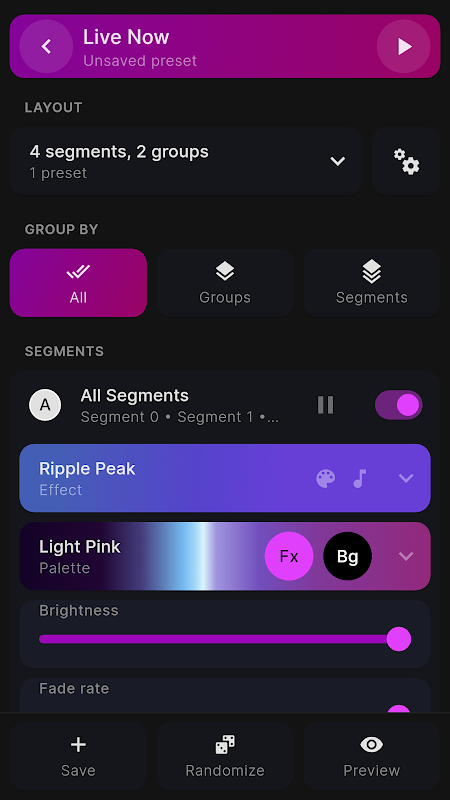 این برنامه رابط کاربری بهبود یافته، عملکرد بهتر و تعدادی ویژگی اضافی را در مقایسه با برنامه رسمی WLED ارائه می دهد: