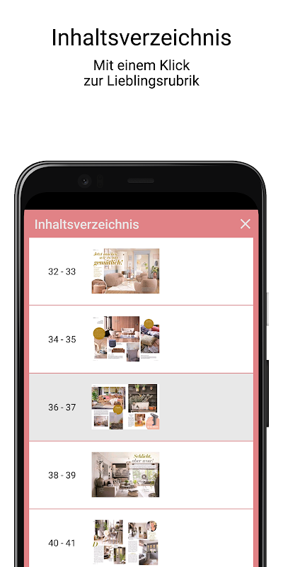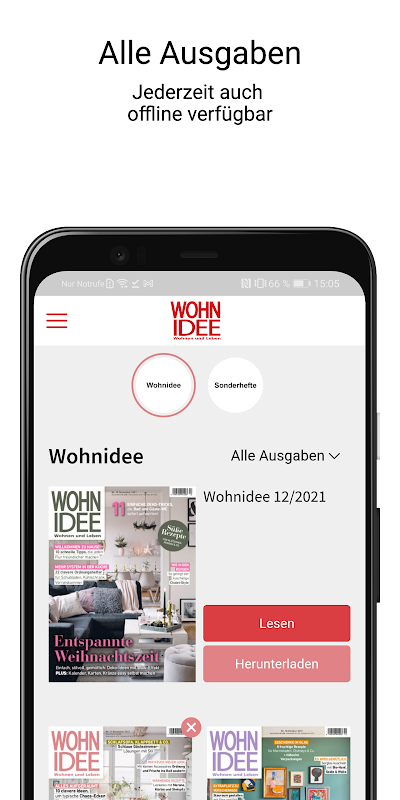 سرانجام برای تبلت و تلفن های هوشمند - ePaper Wohnidee باعث می شود شما بخواهید تغییر دهید و زیباترین سبک ها ، ایده های طراحی خلاقانه ، جدیدترین محصولات و بهترین نکات راجع به موضوع زندگی به شما ارائه می دهد. ترکیبی زیبا از دانش بنیان ، دانش بنیان ، مفاهیم قابل اجرا و ایده های زندگی واقعی با ویژگی های خواندن عالی ، ePaper Wohnidee را به یکی از موفق ترین و محبوب ترین مجلات دیجیتال در آلمان تبدیل کرده است.