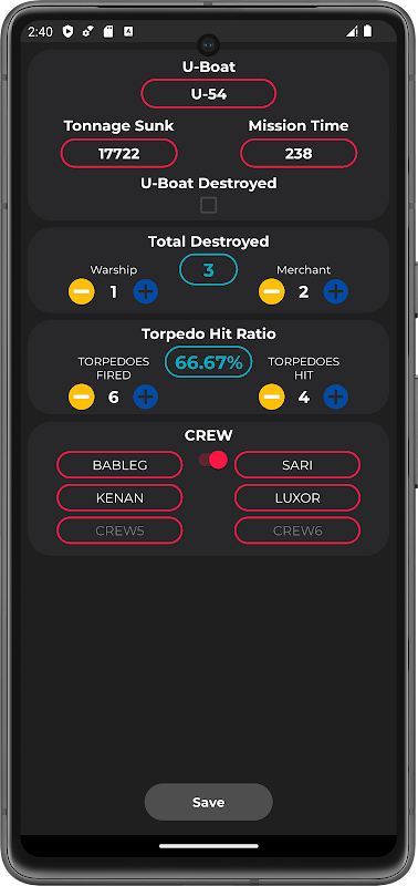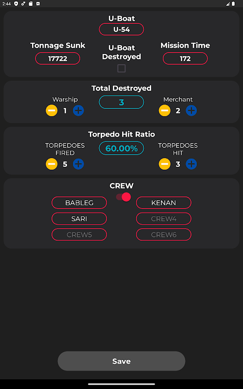 ماموریت های U-boat خود را با ماشین حساب Wolfpack بهینه کنید! با وارد کردن زمان عبور و طول کشتی، سرعت هدف را به سرعت محاسبه کنید. محدوده هدف را با استفاده از ارتفاع عمودی و ارتفاع دکل تعیین کنید. زمان برخورد اژدر و اندازه گیری فاصله تا کشتی مورد نظر را با استفاده از برد هیدروفون و داده های اعوجاج هنگام غوطه ور شدن تخمین بزنید. ثبت کارآمد آمار ماموریت، از جمله تناژ غرق شده و تعداد کشتی، برای سوابق دقیق. با محاسبات سریع و دقیق، مزیت تاکتیکی خود را تقویت کنید!