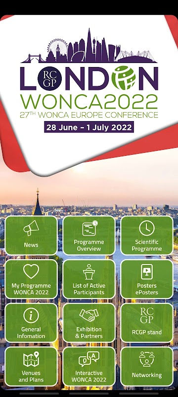 Official app for WONCA conference in London in 2022.
