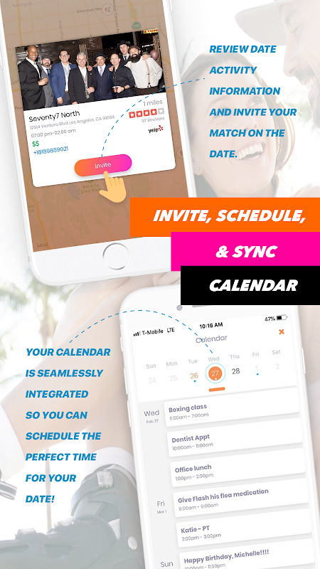 Match -> Find Date Activities -> Schedule -> دعوت از همه در یک برنامه آسان، رایگان!