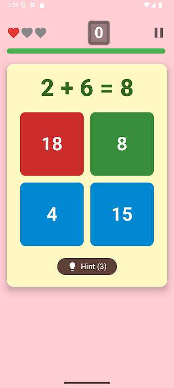 یک بازی پازل علاوه بر ساده و بصری. حل مسئله جمع در 1 دقیقه، +1 امتیاز برای پاسخ صحیح، -1 قلب برای پاسخ اشتباه یا محدودیت زمانی! بازی تمام می شود زمانی که هر 3 قلب ناپدید می شوند. حروف بزرگ، رنگهای کنتراست بالا، ظرفیت نور و پشتیبانی آفلاین آن را برای همه سنین و جنسیتها سرگرمکننده کرده است.