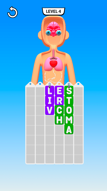 سعی کنید و به رنگ ها و حروف توجه کنید. حروف را از بالا به پایین ردیف کنید تا کلمه مناسبی را پیدا کنید که مورد گم شده را در تصویر نشان می دهد!