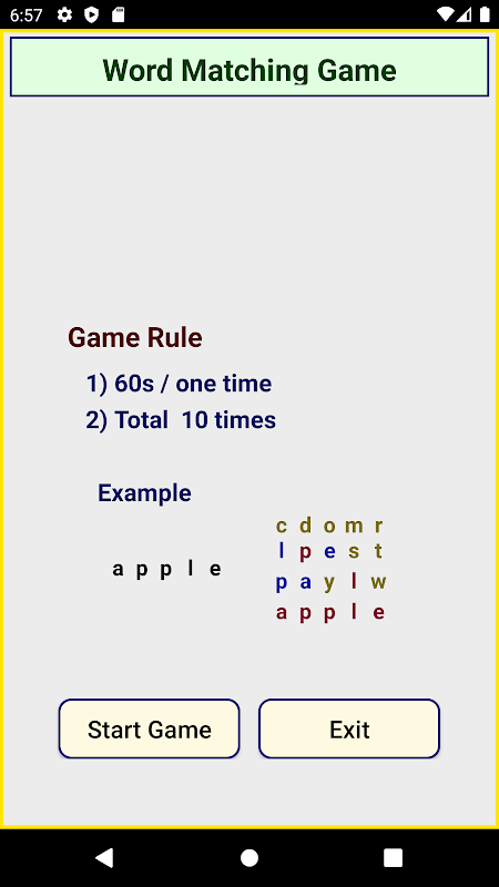 این یک بازی برای حدس زدن املای یک کلمه انگلیسی به طور تصادفی است.