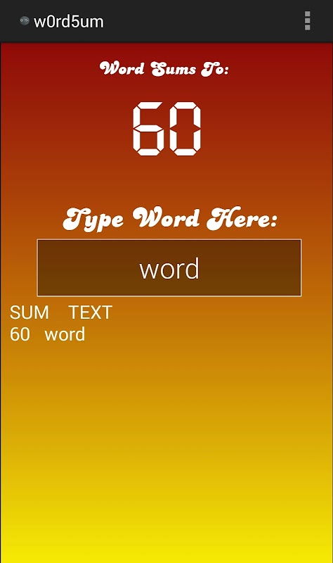 تا کنون فکر آنچه ارزش یک کلمه است؟ با اختصاص یک مقدار عدد به هر حرف از حروف الفبا، A = 1 و = 26 Z، w0rd5um خواهد شد که ارزش کلمه خود را محاسبه کنید! درست قبل از چشم شما!