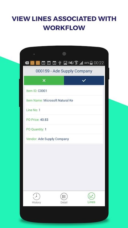 برنامه به طور کامل پشتیبانی چارچوب امنیتی AX و توانایی مدیریت ارشد به تصویب فراهم می کند، رد و یا اظهار نظر در یک گردش کار، مشاهده سابقه و فایل پیوست آن از طریق دستگاه های آندروید خود را.