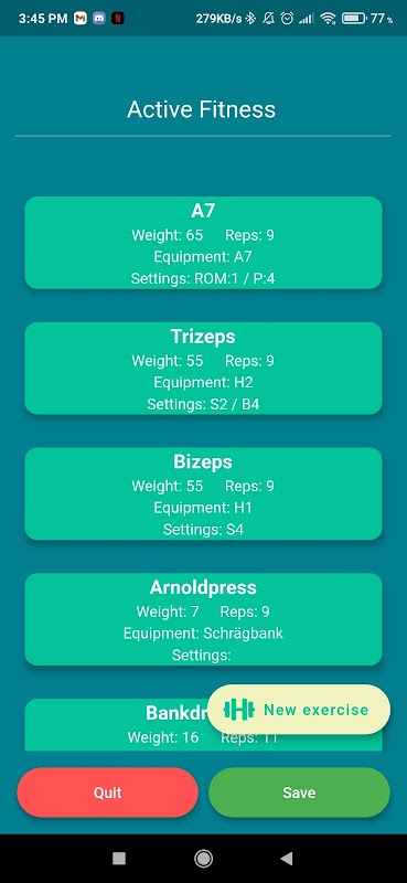 با ثبت نام تمرین و تقویم ، تمام تمرینات موجود خود را پیگیری می کنید. تمرین شما همیشه در دسترس است ، نیازی نیست که تمرینات خود را در یک ورق کاغذ پیگیری کنید. اگر در Homeoffice یا در Fitness Studio محلی خود هستید. شما همه وزن ها و تکرارهای خود را در یک برنامه نگه دارید و بدانید آخرین بار کدام وزن را داشته اید. ورود به سیستم تمرین خود را گسترش دهید و آن را به صورت جداگانه نگه دارید.