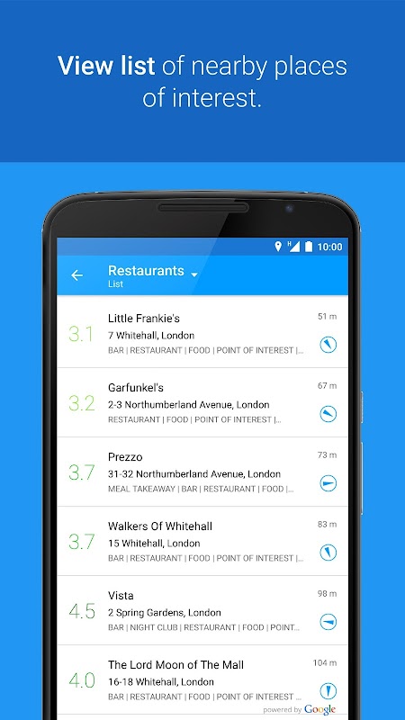 places مکان های اطراف خود را از نظر فاصله یا اهمیت رتبه بندی کنید.