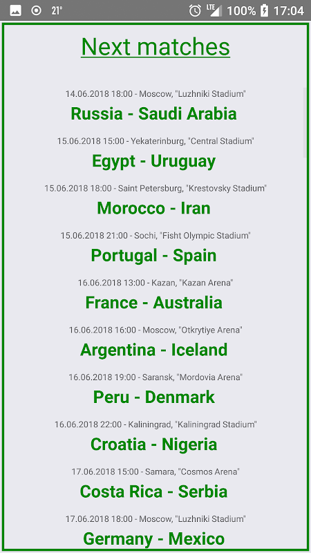 A local game for predicting the results of the matches played in Russia 2018
