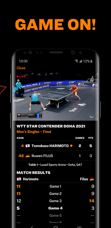برنامه آندروید رسمی جهانی تنیس روی میز