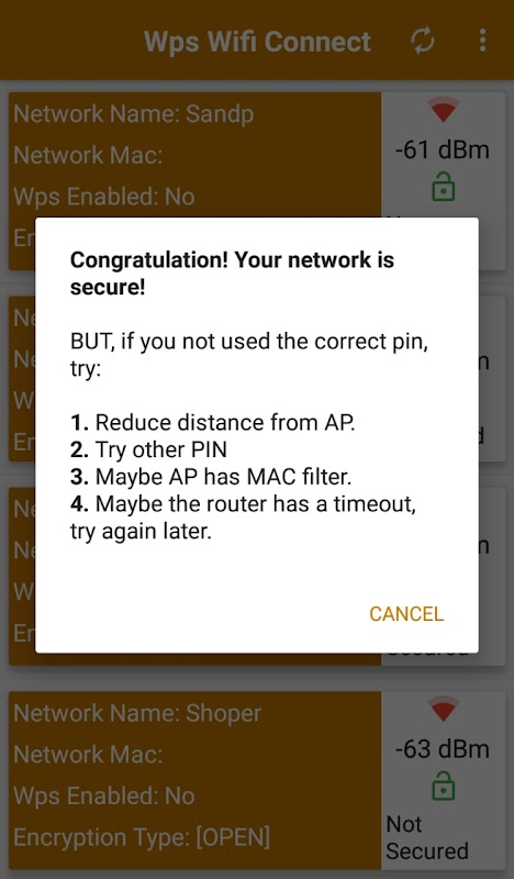 when scanning networks around us using this app, you will see networks with a red cross, these are "secure" networks, they have disabled the WPS protocol and default password is unknown.