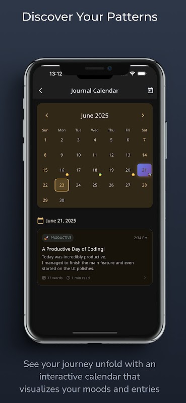 مجله شما یک پایگاه داده قدرتمند از زندگی شما است. با جستجوی قدرتمند، هر ورودی را در چند ثانیه بیابید، افکار خود را با برچسب ها سازماندهی کنید و پیشرفت خود را با تقویم تعاملی زیبای ما مرور کنید.
