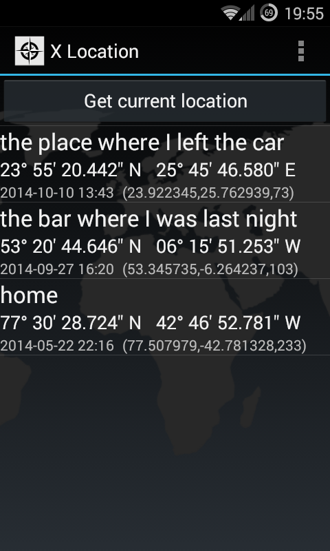 صرفه جویی در مختصات فعلی GPS و به اشتراک گذاری و یا استفاده از آنها را در برنامه دیگری.