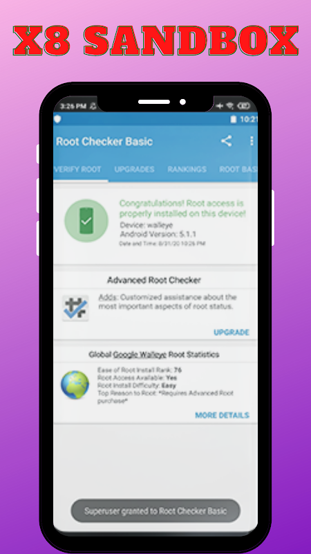 Sebagian besar alat modifikasi game memerlukan akses ke ponsel Android. X8 Sandbox MOD APK adalah alat yang menyediakan akses ke aplikasi yang biasa digunakan untuk mengedit game. Pada awalnya, aplikasi ini dirancang untuk pengujian penetrasi game smartphone.