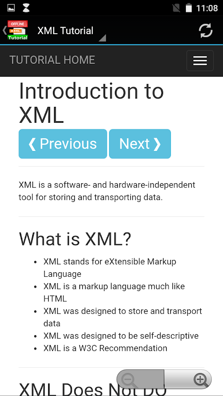 XML Tutorial Offline App is a Complete Offline Guide Through XML. You Can Learn Very Basic Fundamentals Of XML To An Advanced Level Of XML In Step By Step