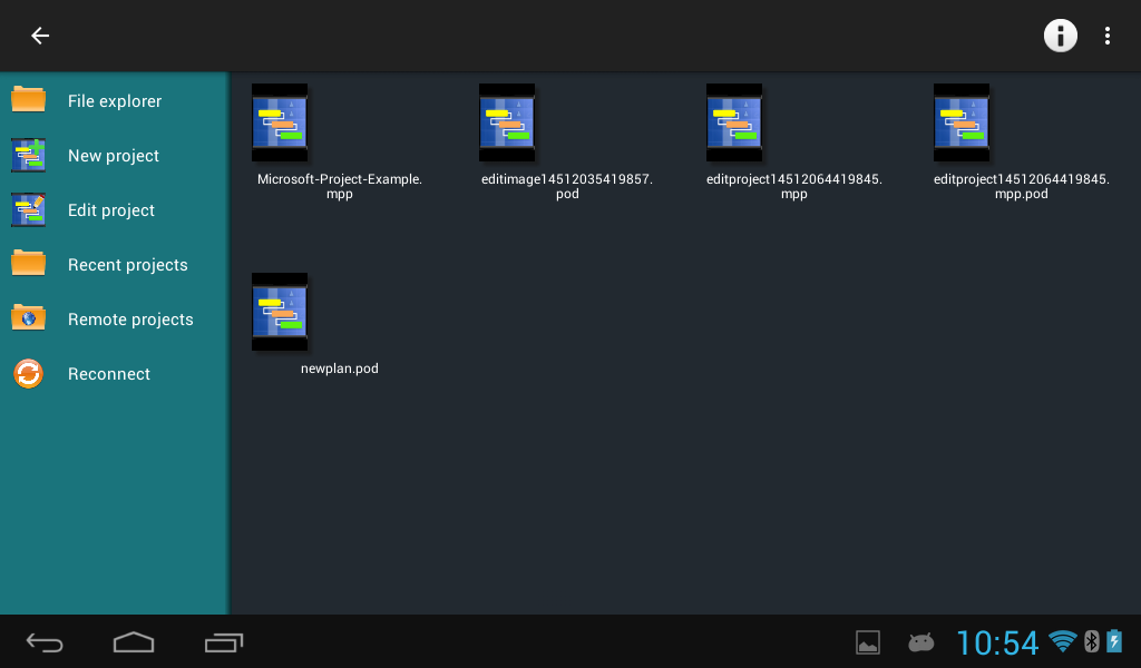 XPlanner is the app ProjectLibre that is run remotely. Note that in order to use this app you must use the following actions with your fingers: