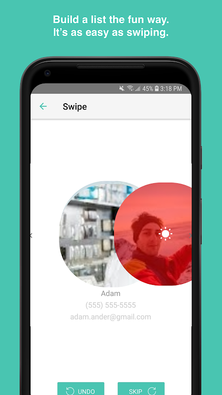 Contacts: Choose how to sync and manage your contacts. Swipe to sort them by interest level. You can make connections, add notes, or check out the Contact Feed to see the tools you've shared and contact actions.