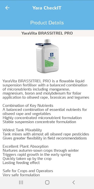یارا CheckIT، برنامه کشاورزی گوشی های هوشمند است که به کشاورزان کتابخانه عکاسی از محصولات اجازه می دهد تا شناسایی ساده و سریع از کمبود مواد مغذی امکان پذیر است. هنگامی که علت کمبود ایجاد شده است، این برنامه می دهد کسب اطلاعات بیشتر در مورد چگونگی کمبود تاثیر می گذارد که محصول، چه نوع خاک مستعد ابتلا به این نوع کمبود و چه عواملی فقر را بدتر کند. CheckIT فراهم می کند توصیه کود برای درمان کمبود مشخص شده، و همچنین به عنوان محصولات جایگزین که اجازه می دهد درمان پیشگیرانه برای فصل رو به رشد زیر است.