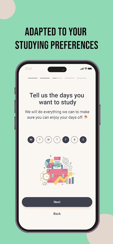 با برنامه ریز مطالعه YourStep در زمان سازماندهی برای امتحانات و ضرب الاجل ها صرفه جویی کنید! دانشآموزان روزها و ساعتهایی را که مایل به مطالعه هستند تعیین میکنند و برنامهریز تقویم ما یک برنامه یادگیری روزانه را سازماندهی میکند که با خلق و خوی روزانه دانشآموز، دشواری در هر موضوع، و بسیاری از اولویتهای مطالعه دیگر سازگار است.