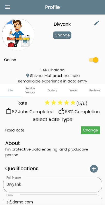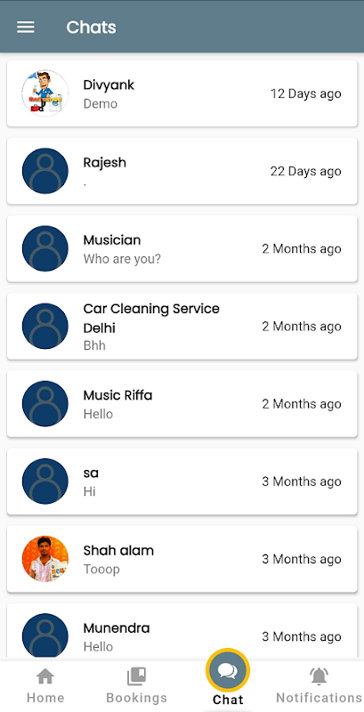 برنامه برای مشتریانی که می خواهند خدمات بگیرند. ویژگی های زیر ذکر شده است: از طریق این برنامه می توانید خدمات خود را در خانه رزرو کنید. زیبایی ، سرویس بهداشتی ، تعمیر AC ، مربی بدنسازی در خانه ، تمیز کردن مبل ، شستشوی اتومبیل ، SPA در خانه ، مربی یوگا و غیره