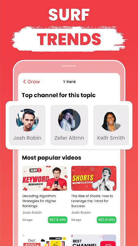 حجم جستجو، جستجوها در ماه، و امتیاز کلی رقابت، رتبه بندی رقبا و روند جستجوی جهانی را دریافت کنید. این ویژگی توصیه های متخصص در مورد موثرترین استراتژی های سئو برای ویدیوهای شما را ارائه می دهد.